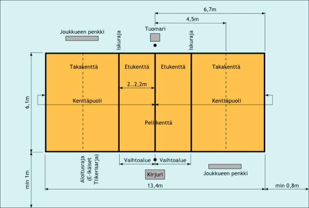 5.5 Aloitusraja on 4,5 metriä keskilinjasta.
