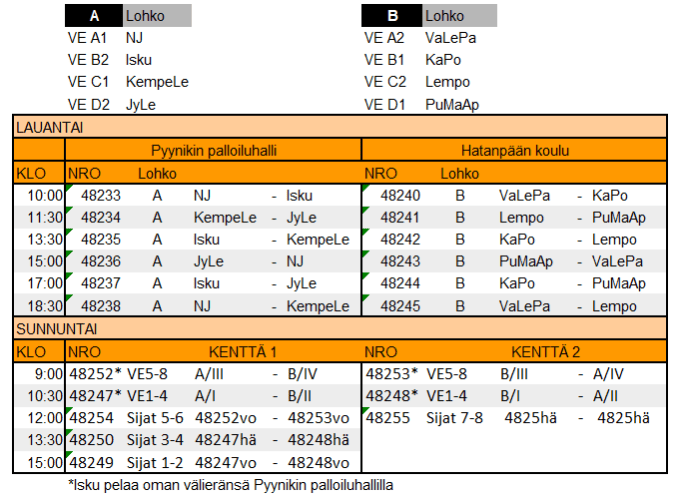 Jos joukkue haluaa vaihtaa varattua vuoroa, ota yhteyttä sarjanhoitajaan kaisu.polso@lentopalloliitto.fi.